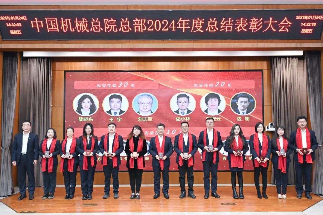 大會現場氣氛喜慶熱烈。《增信賦能 攜手同行》短片,回顧2024年豐碩成果、展望2025年發展前景。各部門以視頻方式送來新春祝福。大會向光榮在院30年、20年、10年的干部職工頒發紀念章;對涌現出的先進集體和優秀個人進行了表彰。集團領導為獲獎代表頒獎,獲獎代表感言分享成長喜悅、表達美好祝福。