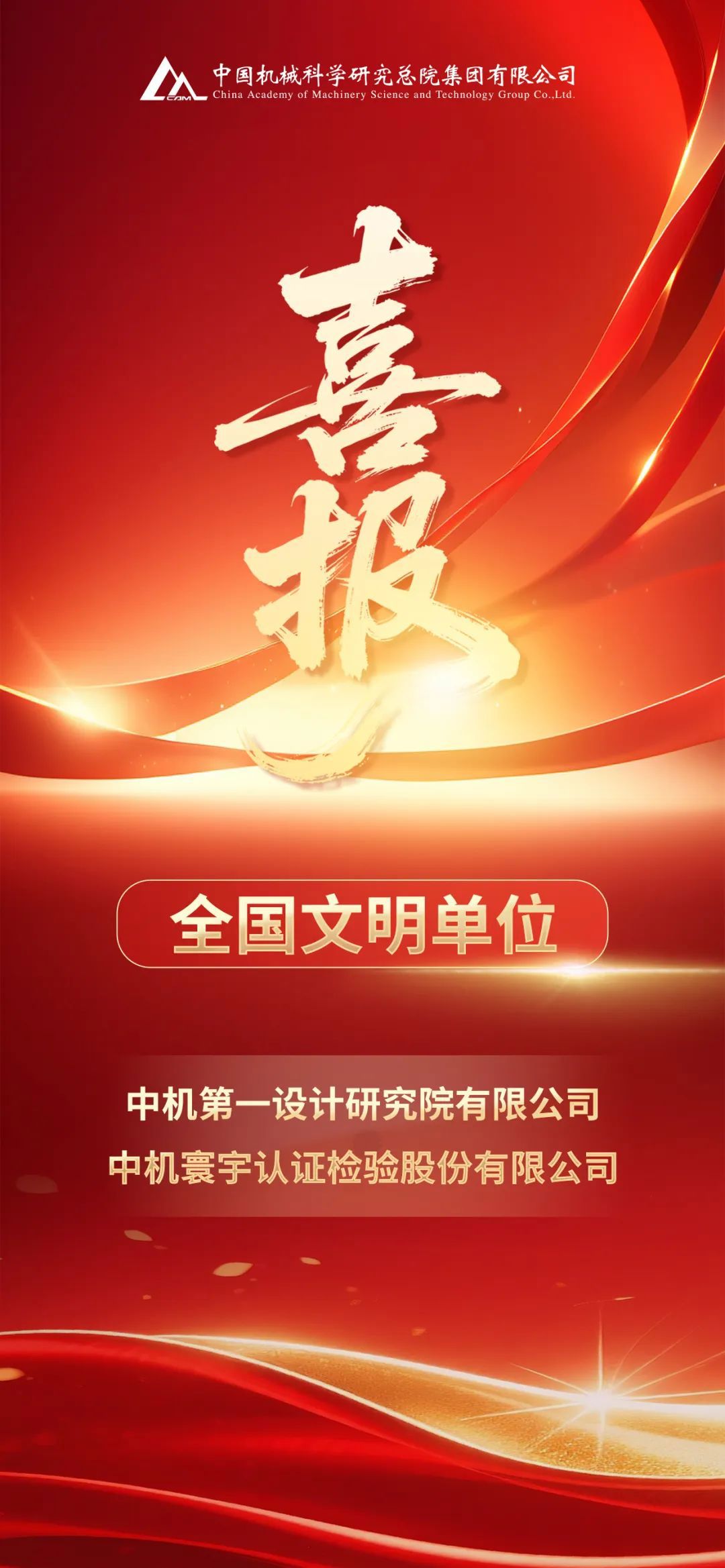 中國機械總院中機一院、中機認檢被授予全國文明單位榮譽稱號